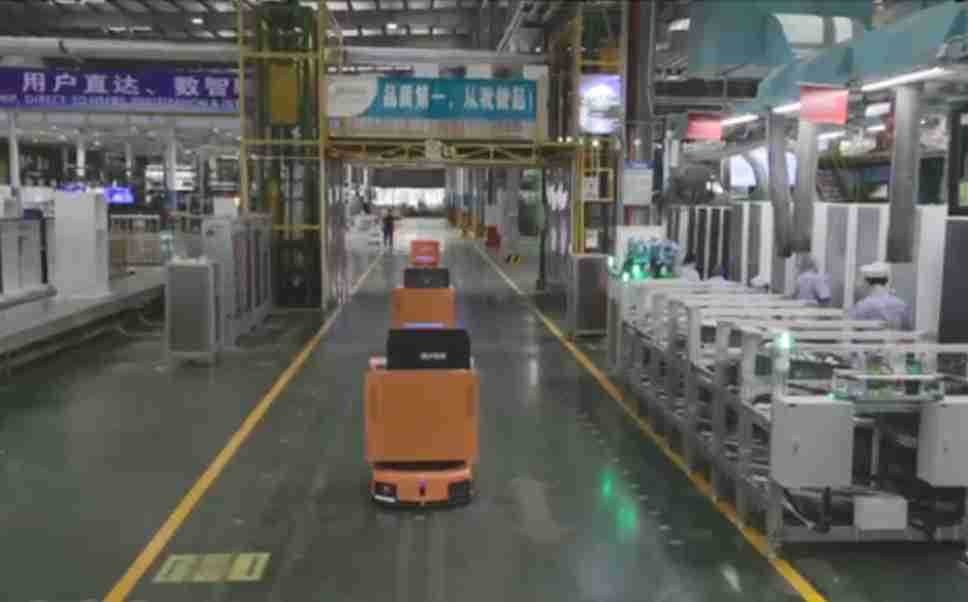 为车载冰箱物流配送打造的智能解决方案,,,,包含产中物流通过潜伏举升AMR搬运至线边,,,,产后成品物流智能仓储,,流程包含产中物流智能齐套入库,,,线边安灯叫料AMR智能配送至线边,,,成品入库、、、、出库,,,通过无人堆高车机器人,,,智能仓储管理替代人工作业管理,,实现更高存储、、、更高效率、、、更具柔性化的解决方案。。。。