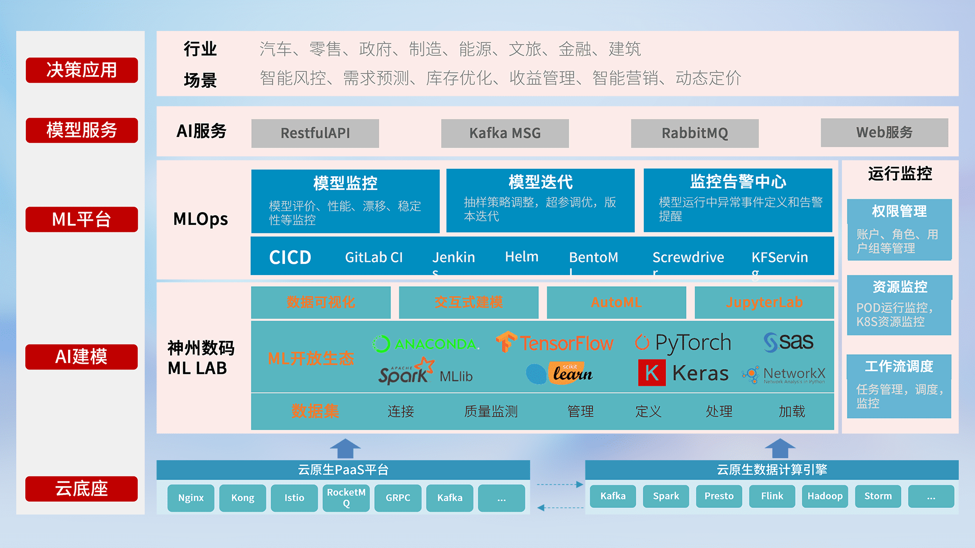 数据+模型双引擎驱动,,面向智能服务场景,,,快速灵活利用AI技术,,支持业务决策,,,,助力企业智能化转型破局。。。。